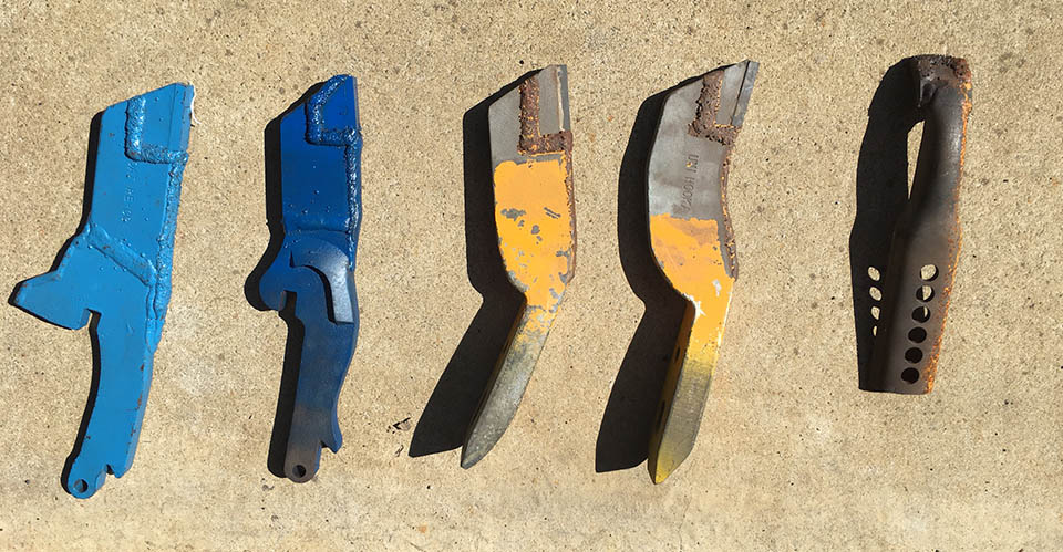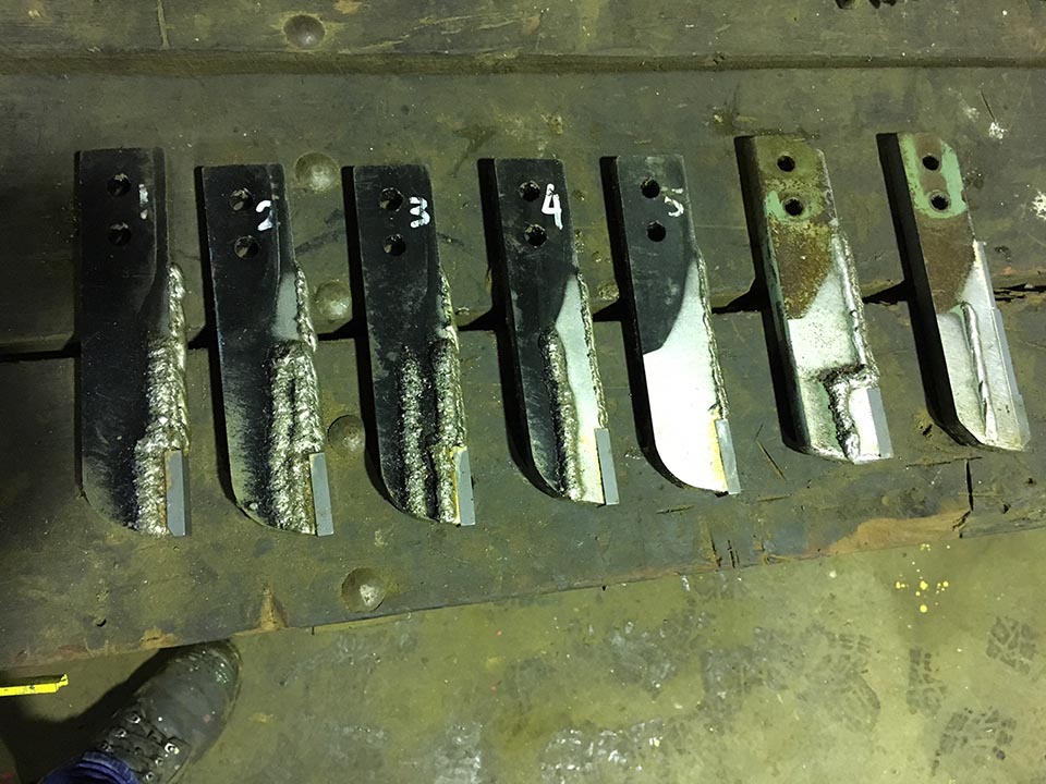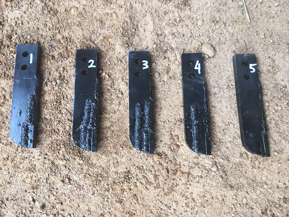 Point wear pattern trials, testing different patterns for soil flow and wear.